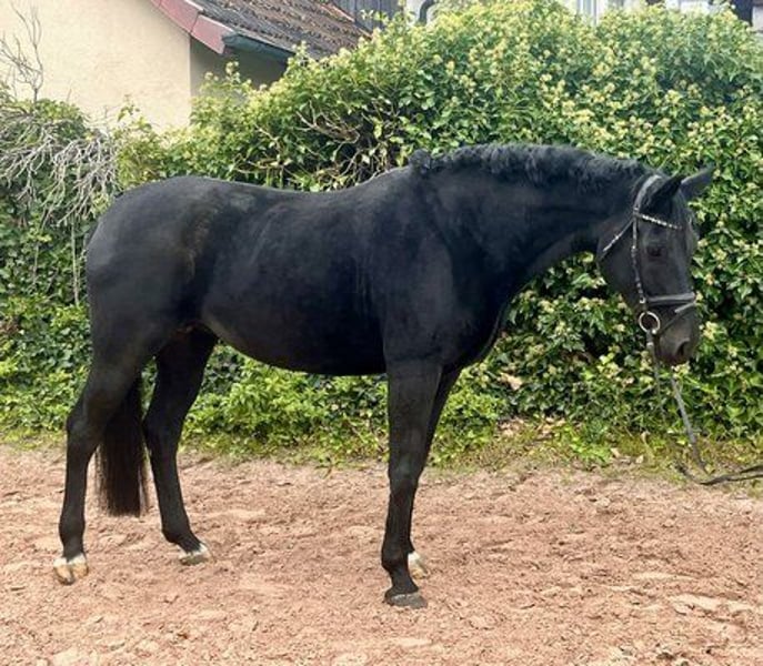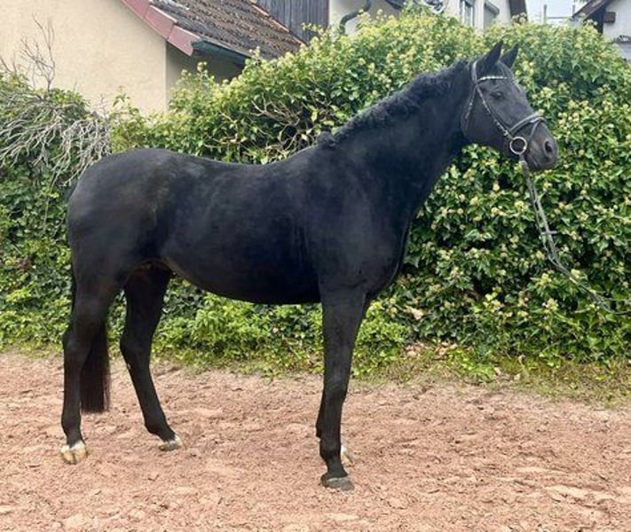 Sandra – a wonderfully sweet mare with excellent conformation! Sandra is a stunning and noble mare, born in 2015, standing approximately 16.1 hands. She is not only very elegant and an eye-catcher but also an outstanding character. Always easy to handle, calm, steady, and composed, with excellent conformation! A well-built, absolutely correct mare with a beautiful and noble head. Sandra is very sweet, human-oriented, and eager to please. She is easy and very pleasant to ride, moves softly through the back, is a reliable partner, and has fantastic conformation – especially her canter is simply a dream. She is familiar with small jumps under saddle but has not been extensively trained in jumping. Sandra is regularly vaccinated and dewormed. She knows lunging, free jumping, groundwork, work in the arena and on the outdoor riding area, as well as long-distance trail riding – whether in a group or alone. She is a trustworthy partner and also suitable for breeding. Overall, a very special horse with which you will definitely have a unique leisure and/or sport partner! Her pedigree is also impressive: Sire: Fürstenball by Fürst Heinrich Dam: by Don Schufro out of Donnerhall Price: €8,500. She is currently being introduced to the arena for the first time with us and is very cool about it. She is located alongside other horses in 96242 Sonnefeld. Transport can be arranged at the buyer’s expense.