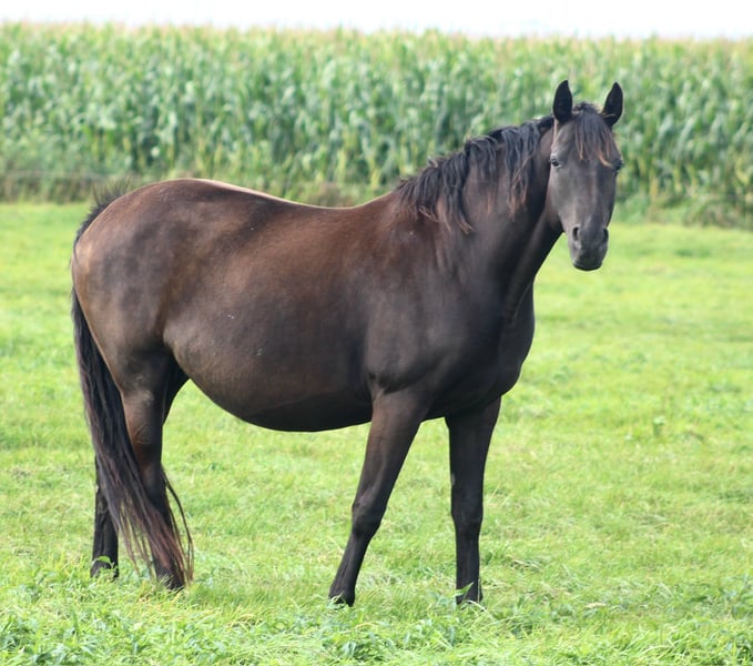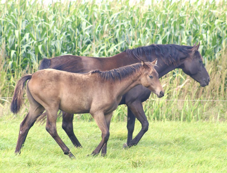 🩷💜 LADY 💜🩷 As we want to downsize our breeding program and have some wonderful female offspring from Lady, we are looking for a great new home for her. She is very calm to handle and never spooky. She passes this trait on to her offspring. Furthermore, all her foals have always been very correct on their feet and had very good X-rays, including their backs. She consistently produces dark-colored offspring. Our two foals by a chestnut stallion are dark brown, and the foals by a black stallion are black. Lady is always very easy to breed and has had a healthy foal every year with us. She foals very uncomplicated and takes great care of her foals. Currently, she is in foal to SANTOS (by Secret / standing at Pape).