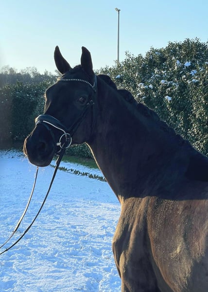 For sale is an elegant Oldenburg mare suitable for advanced dressage competition. Meggie is a 10-year-old mare by Morricone out of Donerbube, standing approximately 16.1 hh. She has competed up to medium level (M) dressage and already performs most of the advanced (S) dressage movements. Meggie impresses with her consistency in training and a very good work ethic. Her friendly and eager-to-learn nature makes her a reliable partner both in training and at competitions. She is very well-behaved in handling and has no vices. Additionally, Meggie also enjoys jumping and easily clears a small course (1.00 m). With further development, this is certainly not her limit, as she shows significantly more talent in free jumping. She is also reliable in the field and calmly completes her rides outdoors. Meggie is compatible with other horses. Naturally, she is farrier- and loading-friendly. An up-to-date veterinary certificate including radiological findings is available.