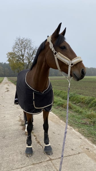 With a heavy heart, I am selling my mare La Etna due to personal and professional reasons. La Etna is an incredibly lovable, people-oriented horse with a wonderful character. She impresses not only with her pleasant demeanor in daily handling but also with her great talent and enthusiasm for show jumping. She consistently shows motivation, caution, and a good overview over the jumps. A horse that simply makes riding fun. She is also pleasant to ride in dressage, responds well to aids, and is enjoyable to work with. Therefore, she is suitable not only for show jumping but also has potential for eventing. In the terrain, La Etna is well-behaved and reliable, showing no fear even in challenging situations. She is easy to load and farrier-friendly, overall uncomplicated in handling. Thanks to her excellent character and rideability, she is very suitable for ambitious riders in show jumping, for recreational riding at a high level, or as a school horse for young riders. I wish for La Etna a loving home where she can continue to be supported and showcase her strengths. She will only go to the very best hands. If genuinely interested, I look forward to hearing from you.