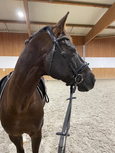 Lilly is a beautiful 14-year-old dark chestnut mare who is very people-oriented and friendly. She is very balanced and up for any fun. Lilly has no vices and is very well-behaved. She is shod in front, is farrier-friendly and loading-friendly, does not buck, and does not rear. In the past, Lilly has achieved many victories and placements up to the M** level. Currently, she is successful in L dressage and is therefore in top shape to ride immediately. She is absolutely reliable in lessons and also jumps series changes reliably. She has also been presented in show jumping up to the A** level at competitions. Additionally, she is a great partner for leisure, with whom you can have fun every day. Lilly does not have a current vet check as she has been in the owner's possession for 11 years and was purchased directly from the breeder back then. To spare Lilly from "riding tourism," we charge a fee of €25 for trial rides. This will, of course, be deducted from the purchase price.