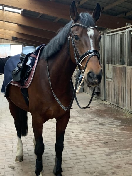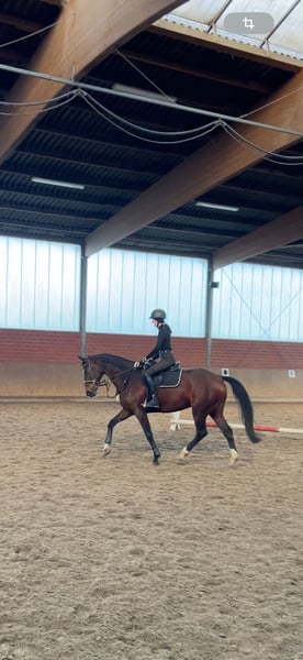 Met pijn in het hart moeten mijn zus en ik, vanwege professionele redenen, op zoek naar een nieuw thuis voor onze merrie Luna. Ze is erg lief en zachtaardig aan de hand, maar ook onder het zadel. We hebben haar vooral recreatief in dressuur gereden. Ook tijdens buitenritten is ze zeer braaf, betrouwbaar, altijd goed handelbaar en gaat zelfs alleen het terrein in. Luna is geen absolute beginnerspaard, omdat ze een ruiter nodig heeft die zich af en toe ook eens door haar heen kan zetten. Als je op zoek bent naar een trouw en lief recreatiepaard en je hebt ervaring, dan is Luna het perfecte paard voor jou. Ze vertoont in haar achterhand lichte shivering, waardoor ze af en toe kleine ritmestoornissen heeft tijdens het rijden. Daarom wordt ze vooral voor recreatief gebruik gereden. Als je een paar dingen in de voeding en training in acht neemt, merk je daar echter bijna niets van. Als Luna je interesse heeft gewekt of je nog vragen hebt, neem dan gerust contact op!