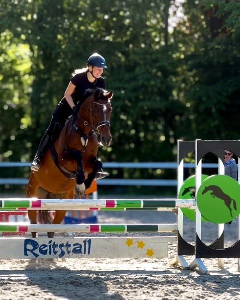Schweren Herzens müssen meine Schwester und ich uns aus beruflichen Gründen dazu entscheiden, für unsere Stute Luna ein neues Zuhause zu suchen. Sie ist total lieb an der Hand wie auch unterm Sattel und wurde von uns freizeitmäßig hauptsächlich Dressur geritten. Auch beim Ausreiten ist sie sehr brav, verlässlich, immer händelbar und geht auch alleine ins Gelände. Sie ist kein absoulutes Reitanfänger Pferd, da sie einen Reiter braucht, der sich hin und wieder mal durchsetzen können muss. Wenn du ein treues und liebes Freizeitpferd suchst und gute Erfahrungen mitbringst, ist Luna das perfekte Pferd für dich. In der Hinterhand hat sie ein leichtes Shivering, weshalb sie beim Reiten hin und wieder kleine Taktunreinheiten hat, deshalb sollte sie freizeitmäßig geritten werden. Wenn man ein paar Sachen bei der Fütterung und beim Training beachtet, merkt man davon jedoch kaum etwas. Wenn Luna dein Interesse geweckt hat oder du noch Fragen hast melde dich doch gerne!