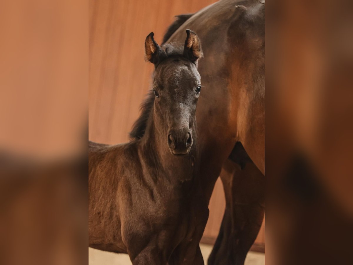 This elegant black filly was born on May 5, 2025. She is sired by Vivaldos (a top dressage stallion by Vivaldi/Desperados-Brentano II, who produced the price highlight at the Vechta foal market in 2021, as well as several other high-priced foals the previous year) out of a Florenz mare. Her grandfather, Carnando from the Tannenhof stud, successfully competed at St. Georg and Intermediaire I under Oliver Luze. The dam line includes further successful dressage and show jumping horses, elite and association premium mares, as well as several PSI horses. A foal with excellent movements, noble and stunningly beautiful. Price available upon request, inquiries by phone only.