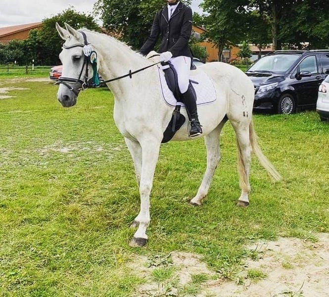 Wir suchen für unsere "Schimmi" eine neues liebevolles zuhause. Sie ist eine 2003 geborene Oldenburger Stute und war bei uns als Lehrpferd im Reitunterricht eingesetzt. Sie ist entsprechend gehorsam und auch unter unerfahreneren Reitern artig. In den letzten Jahren wurde sie freizeitmäßig von ihrer Reitbeteiligung geritten, inzwischen fehlt uns leider die Zeit sie regelmäßig zu bewegen. Sie ist bis A-Niveau auf dem Turnier vorgestellt und konnte in Jugendprüfungen sowohl in der Dressur, als auch im Springen einige Schleifen sammeln. Zudem geht sie brav ins Gelände und auf den Anhänger oder LKW. Wir wünschen uns für Schimmi einen Endplatz mit täglichem Weidegang oder Offenstall, in dem sie vielseitig bewegt wird. Sie wäre sowohl für Jugendliche, als auch Erwachsene oder Wiedereinsteiger bestens geeignet. Sie soll ausdrücklich nicht noch mal als Schulpferd eingesetzt werden! Bei uns kommt sie einfach zu kurz und sie hat es verdient, noch einmal geliebt und bespaßt zu werden! Ein Kennenlernen und Probereiten ist möglich. Es gilt definitiv Platz vor Preis!