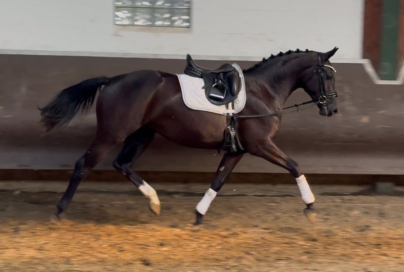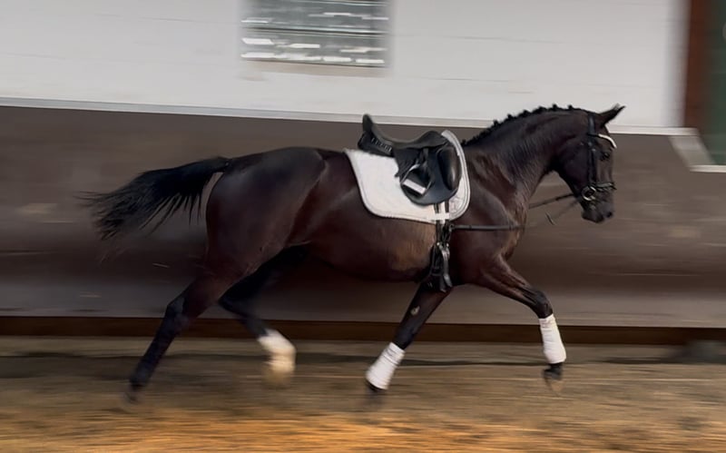 Another beautiful daughter of the Kör and HLP winner "Cafe au lait", who has been attracting attention for several years with his incredibly successful offspring in dressage and show jumping in the heavy class! Both by the father and by the breeder-proven and double-sided predisposed mother, who also has the necessary blood connection, this beautiful dark mare is recommended for dressage and show jumping, as well as eventing alike. Two full siblings have already been sold and are also extremely strong in movement and talented in jumping! A very high-quality full brother can be visited on site. Cafe au lait himself was a finalist in the National Championships under Philipp Weishaupt and has been successful up to S*** jumping, but has also been equipped with three spectacular GGA and has been trained dressage at S level. Stationed with Paul Schockemöhle, he has already fathered several internationally successful show jumpers, including "Royce", winner of the FEI CSI5* $500,000 Rolex Grand Prix Wellington. The licensed Cafe's Champus became Vice World Champion of Young Horses under Rene Tebbel. Also licensed and from our breeding: Cafe Junior (Cafe au lait x Silvio I), placed internationally S*-jumping. Other young horses from jumping dam mares have already placed several times in dressage horse tests A to M and are remarkably strong in movement and clear as head. Even in the large square, the "Cafe's" are convincing all along the line: This is how "Cafe's Casimir" (Cafe au lait x Calido x Grannus) became the celebrated top prize of the Oldenburg Elite Auction, was already a serial winner in dressage horses M at a young age, and at the age of 7 he was again a serial winner in his first S dressage! Meanwhile, he is victorious in international Intermediaire I. Mare Kasselmann's Cafe's Caletta (Cafe au lait x Calato) is also already S-dressage and has just won the international Grand Prix. Cafe's Matts (Cafe au lait x Don Frederico) became the second most expensive dressage horse of the Oldenburg Summer Mixed Sales. Our foals receive daily mineral feed and foal starters, regular EQUISTRO Haemolytan and Ipaligo Foal, worming and blacksmithing are of course also a matter of course. The mothers also receive special mare feed throughout the pregnancy, daily juice feed and linseed oil, as well as hay ad libitum. So our offspring are always in the best state of health! Other foals and young horses from our own breeding on request. Some of them can be found among the other ads. We have around 20 café au lait foals every year. There are also always some pregnant broodmares for sale. (Video) Inquiries can only be made via WhatsApp.
