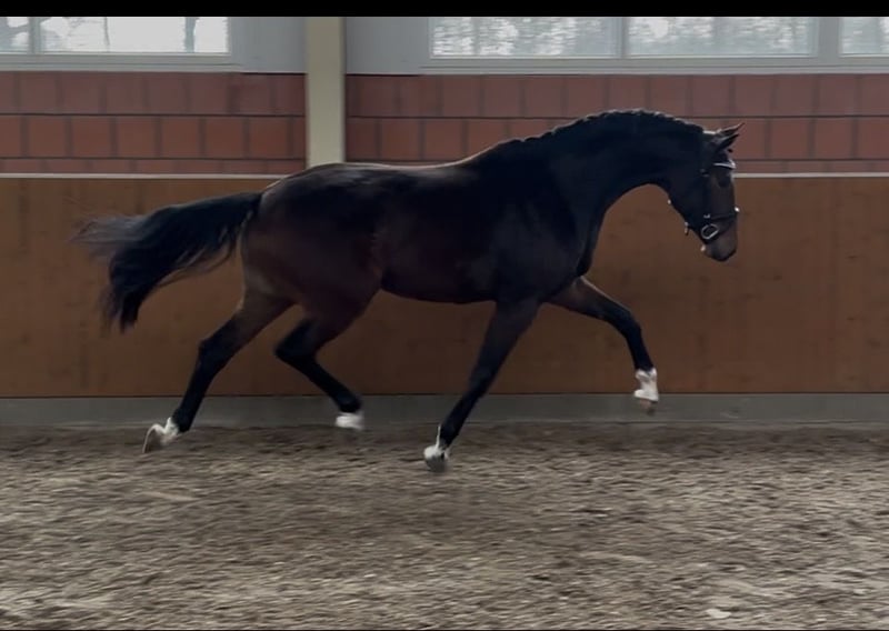 Elfenbeauty • *2023 • 1,66 m ⭐️ Bordeaux - His Highness - Rohdiamant ⭐️ Dieser sympathische 3-jährige Oldenburger Stute entspringt dem höchst erfolgreichen Oldenburger Stutenstamm der Elfenblume und überzeugt nicht nur durch ihre Abstammung mit drei absoluten Rittigkeitsgaranten in der Ahnentafel, sondern vor allem durch ihren außergewöhnlichen Charakter. 👉 Elfenbeauty ist bei uns geboren und wuchs gemeinsam mit einer weiteren Stute bei uns auf. Sie ist sehr artig und umgänglich. Somit ist sie selbstverständlich schmiede- und verladefromm. Sie hat keinerlei Unarten oder negativen Eigenschaften. 👉 sie wurde altersentsprechend, schonend an das Longieren, Satteln und Auftrensen gewöhnt. Zudem hat sie bereits erste Schritte im Schritt und Trab unter dem Reiter sehr gut gemeistert.. Sie hat sich dabei äußerst kooperativ und lernwillig gezeigt. 👉 Elfenbeauty ist kerngesund und war bisher nie krank.Sie wurde in diesem Frühjahr klinisch und röntgentechnologisch (inklusive Hals und Rücken) ohne nennenswerte Befunde untersucht. Sie verfügt somit über einen sehr guten TÜV! ❤️ Elfenbeauty - wer sich eine erfolgreiche Zukunft in Sport oder Zucht aufbauen möchte oder einfach eine verlässliche Partnerin für die Zukunft sucht, der ist hier an der richtigen Adresse! 12,5 t. 🥕🥕🥕 📍 Standort: Bohmte 📲 Nähere Informationen unter: +49 151 41315366