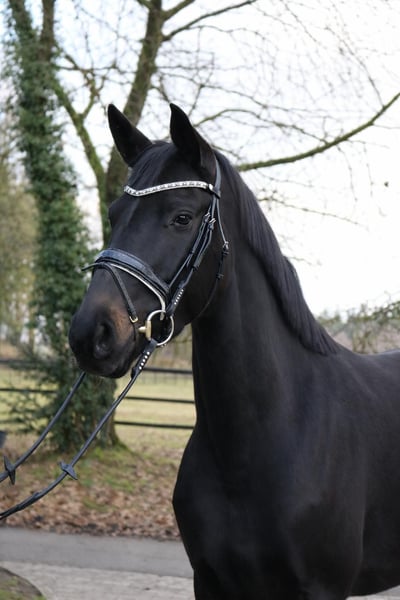 Bildschöne Rappstute - Dressurnachwuchs mit Top-Abstammung Total McLaren × Samarant × Figaro Zum Verkauf steht, direkt vom Züchter, eine 4-jährige Stute (ca. 1,70 m) in besonders ansprechender Aufmachung – ein bildschöner, lackschwarzer Rappe mit viel Ausdruck und Ausstrahlung. Die junge Stute überzeugt mit drei sehr guten Grundgangarten, viel Takt und Elastizität sowie einer natürlichen Bergauftendenz. Sie bringt beste Voraussetzungen für eine weitere Förderung im Dressursport mit. Im Umgang zeigt sie sich sehr menschenbezogen, verschmust und unkompliziert. Sie ist freundlich, aufmerksam und angenehm zu arbeiten. Ausbildungsgemäß ist sie solide anlongiert und kennt bereits Reitergewicht, zeigt sich dabei brav und lernwillig. Eine ideale Nachwuchsstute für Reiter, die sich ein talentiertes junges Pferd selbst weiter ausbilden möchten. Eine typvolle, bewegungsstarke Nachwuchsstute mit viel Potenzial für Sport und Freizeit. Für Schnellentschlossene noch zum Selbstausbilderpreis. Der Preis steigt bei weiterer Ausbildung. Ein guter TÜV liegt vor. Mehr Informationen gerne auch telefonisch unter +49 173 7359633.