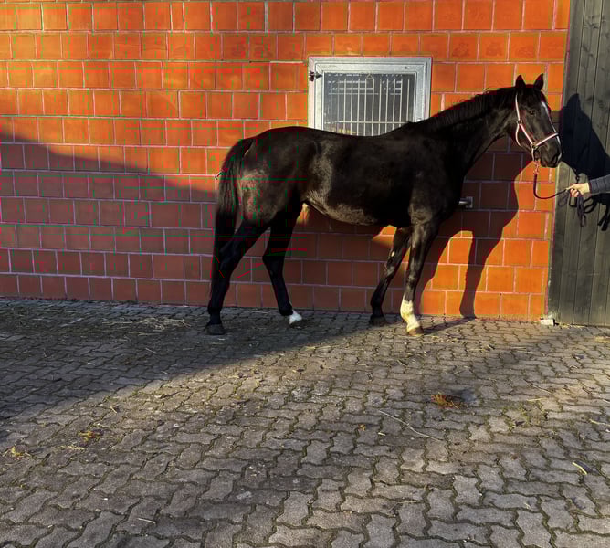 À vendre, cette magnifique jument de So Perfect x De Niro. Elle est gestante pour juin 2026, avec le finaliste du Burgpokal, Be Sure. Elle est facile à vivre, compatible avec le troupeau, et habituée à la ferrure ainsi qu'au chargement en camion. Elle représente également une option très intéressante pour un cavalier ambitieux, qui pourrait commencer directement après la pause foal. Elle connaît déjà le travail en longe avec selle et bridon. Pour toute question, veuillez contacter le TEL : 0151 24045505.