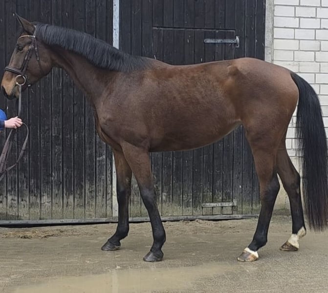 High-quality, sensible young mare for sale! "Prinzessin" is a promising and very honest young mare with an excellent character, always eager to do her best. Although she is still very fresh under the saddle, she shows a calm demeanor and has enough energy for sport. She tends to be lower in the herd hierarchy and gets along well with new members. She is familiar with the basics of grooming, goes willingly onto the lunge line, and stands patiently for grooming and tacking. An excellent choice for ambitious riders seeking not only sporting potential but also a true companion. Her close family line, originating from a still young dam, has successful offspring up to Grand Prix level and offers high riding comfort and great collection abilities. Prinzessin can be visited and tried under saddle by prior arrangement.