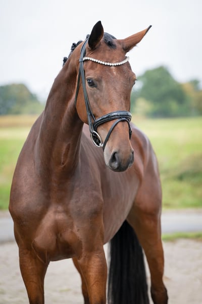 ⚜️ À vendre ⚜️ * Jument * Né(e) en 2021 * Environ 1,70 m * Souches Galaxy / Don Larino * Radiographies disponibles Jeune cheval très moderne avec un excellent caractère. Dotée de trois allures de base très bonnes, elle se montre calme et enthousiaste au travail, sous la selle. Facile et agréable en main. Nous souhaitons pour cette superbe jument un nouveau foyer qui saura la soutenir et la valoriser. Pour plus d’informations, veuillez nous contacter par téléphone au 0173:9954104 📞