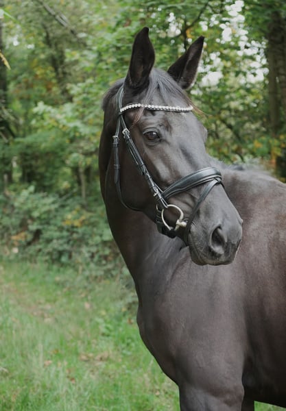 Diese charmante und leistungsbereite Stute überzeugt nicht nur durch ihr schickes Exterieur, sondern vor allem durch ihr Talent und ihre Ausstrahlung im Viereck. Bereits in Dressurpferde A vorgestellt und platziert, kann sie sich auf durchweg gute Benotungen in ihren bisherigen Prüfungen verweisen. Aktuell wird sie spielerisch an die Lektionen der Dressurpferde L herangeführt. Ihr schwungvoller, ausdrucksstarker Trab und ihre kraftvolle, bergauf gesprungene Galoppade sowie der taktreine Schritt, bietet alles, was man sich von einem Nachwuchspferd für den gehobenen Dressursport wünscht. Im Turniereinsatz zeigt sie sich absolut zuverlässig, ist brav, nervenstark und auch alleine im Viereck souverän unterwegs. Zudem ist die geländesicher, schmiede- und verladefromm. Auch Freizeitreiter werden mit ihr Freude haben: Sie zeigt sich stets zuverlässig, hat bereits positive Erfahrungen mit jüngeren Reiterinnen gesammelt und präsentiert sich immer brav und unkompliziert im Umgang. Diese 5-jährige Dressurstute bringt Talent, Lernbereitschaft und das gewisse Etwas mit, um in Zukunft im höheren Dressursport zu glänzen - gleichzeitig aber auch ein verlässlicher Partner für den Alltag zu sein. Ein kurzes Video vermittelt einen ersten Eindruck ihres Bewegungsablaufs und ihrer Qualität unter dem Sattel. Bei Interesse oder für weitere Informationen stehe ich gerne zur Verfügung. Ein Proberitt ist nach Absprache möglich. Kontaktieren Sie mich gerne, um mehr über dieses vielversprechende Pferd zu erfahren!