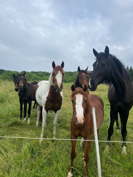 Elle est parfaitement adaptée pour la reproduction et, malheureusement, en raison d'une blessure au m fibularis tertius avec une déformation de l'articulation du paturon à l'âge de 6 mois, elle est seulement partiellement adaptée pour le grand sport. En raison de la blessure guérie, mais avec une déformation molle persistante (voir photo), le travail monté et l'accompagnement - si l'équitation est souhaitée en dehors du domaine de loisir - sont primordiaux pour cette jument, qui continue à montrer ses merveilleuses allures. Cette jument apprend très vite et a envie d'apprendre, ce qui rend le travail au sol ou la dressage libre très agréable. Elle cherche toujours à plaire à son propriétaire et reste calme même dans des situations difficiles, comme sur des terrains de concours, avec de nombreux chevaux dans la carrière. Il n'y a eu aucun problème lors de la montée et de l'éducation, et nous disons tous que sans la déformation de l'articulation du paturon, elle serait devenue une grande jument. Cela signifie qu'elle peut effectuer des séances d'entraînement normales et intensives, mais montre après environ 2-3 semaines des tensions musculaires. Dans le domaine de loisir, cela ne devrait être qu'un problème limité. Elle est très gentille et sociable avec les humains, très bien intégrée même si elle a un rang élevé dans les troupeaux, bien éduquée et a déjà reçu un bon accompagnement, ayant acquis ses premières expériences sous la selle. Concernant la reproduction : les poulains promettent d'être absolument exceptionnels (ligne maternelle : Secret/Sezuan), d'autant plus que le diagnostic peut être attribué à 100 % à la blessure décrite ci-dessus. Des photos de poulains avec des membres postérieurs absolument corrects, plutôt trop droits (!), sont bien sûr disponibles. Le vétérinaire qui nous a accompagnés à l'époque, y compris le physiothérapeute et la réhabilitation, peut être contacté sans problème. Nous sommes heureux d'établir un contact avant l'achat. Nous avons joint une photo de poulain, nous pensons que cela montre tout. Le prix est fixé de cette manière car nous voulons à 100 % exclure toute "exploitation". Ici, c'est 100 % de place avant le prix ! Nous recherchons de bonnes mains pour ce cheval très gentil et sociable ! Si vous êtes intéressé ou si vous avez d'autres questions, nous serons ravis de vous entendre.