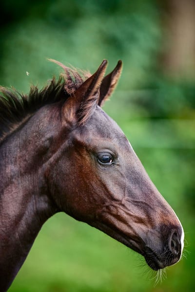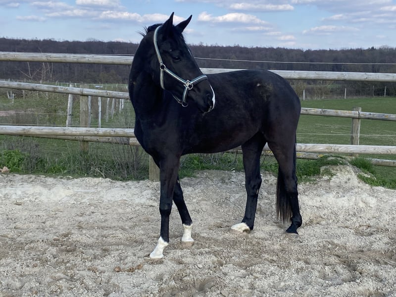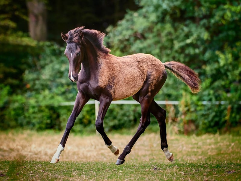 **Sales Advertisement: Dreamy Oldenburg Mare for Sale** We offer a beautiful Oldenburg mare for sale. **Features:** - **Breed:** Oldenburg - **Lineage:** Secret/Finest/Don Schufro - **Gender:** Mare - **Year of Birth:** 2020 - **Color:** Black - **Height:** 172 cm - **Suitability:** Dressage (Leisure) / Breeding This talented and stunning mare impresses not only with her elegant appearance but also with her excellent temperament, wonderful character, and willingness to learn. She is ideally suited for breeding and, unfortunately, due to an injury to the m fibularis tertius with subsequent fetlock drop at the age of 6 months, she is only conditionally suitable for high-level sport. Due to the healed injury, but with the remaining soft fetlock (see picture), riding and supportive training are essential for this mare, who continues to showcase her wonderful gaits. As this mare learns very quickly and is eager to learn, it is also enjoyable to deepen groundwork or free dressage with her. The mare always wants to please her owner and remains calm even in challenging situations, such as at competitions with many horses in the arena. There were no issues during the backing and training, and we all say that without the fetlock drop, she would have become a true star. The mare has a lot of impulsion (despite the condition) and can only be ridden by beginners to a limited extent. She is very well-behaved and people-oriented, very compatible even though she is high-ranking in her herd, well-trained, and has already gained initial experiences under saddle. Her training has been ongoing for 5 months, and the videos are not "doctored" recordings; they reflect her current training status (the trainer can be heard in the background). Thus, the mare is suitable for experienced riders as well as ambitious beginners, but not for novices, especially for riders who may also be considering breeding. The foals promise to be absolute stunners (dam line: Secret/Sezuan), particularly since the findings can be attributed 100% to the injury described above. Corresponding foal pictures with the absolutely correct, rather steeply standing hind legs are, of course, available. The veterinarian who accompanied us at that time, including physiotherapy and rehabilitation, can be contacted if desired. We are happy to establish contact before the purchase. We have attached a foal picture, which we believe shows everything. If you are interested or have further questions, we look forward to hearing from you. You are welcome to arrange an appointment for a trial ride. Don’t miss this opportunity! Those who invest time and riding ability here, or who want to go in the direction of breeding, will be rewarded.