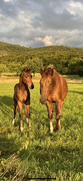 Debido a la reducción de existencias, ofrecemos a nuestra Mia en venta. Es ideal para la cría de potros enérgicos. (Yegua de élite según su ascendencia). Hemos criado dos excelentes yeguas jóvenes de ella. Una yegua de Scolari *2023 y una yegua de Erste Sahne *2024. (Estas también pueden ser vistas si hay interés). La yegua ha quedado preñada a la primera vez en cada intento y ha parido sin problemas. Es una buena yegua madre con suficiente leche. La yegua no fue cubierta para el próximo año debido a la reducción de existencias prevista. La yegua tuvo una fisura del hueso del casco como potra y también un problema de rodilla a raíz de ello. Por lo tanto, decidimos utilizarla para la cría. La yegua se mueve sin problemas descalza. Desafortunadamente, ha comenzado a morderse.