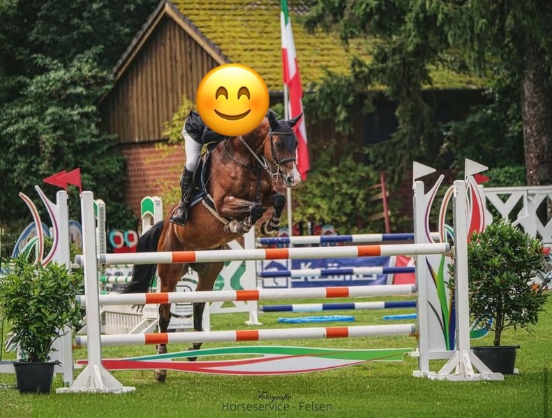 We are looking for a new home for our talented Oldenburg mare. - Breed: Oldenburg - Gender: Mare - Year of Birth: 2018 - Color: Bay - Height: 165 cm Chacco-Blue * Quidam's Rubin * Grannus This impressive mare shows great potential in show jumping and is suitable for experienced riders. She is well-mannered, top trained, and has already achieved multiple placements in 125 and 130! She has also gained her first experiences in the 140 course, so it would be great if she could continue to be developed. She possesses a quick and agile front end as well as hind leg technique! Our mare is not only performance-oriented but also very people-oriented and has a friendly and balanced character. She is regularly vaccinated and dewormed. There are currently 21 X-rays available with no findings. Price corresponds to quality. If you are looking for a talented partner for show jumping, we look forward to hearing from you! We are excited to introduce you to our mare! For further questions and information, please feel free to contact us!