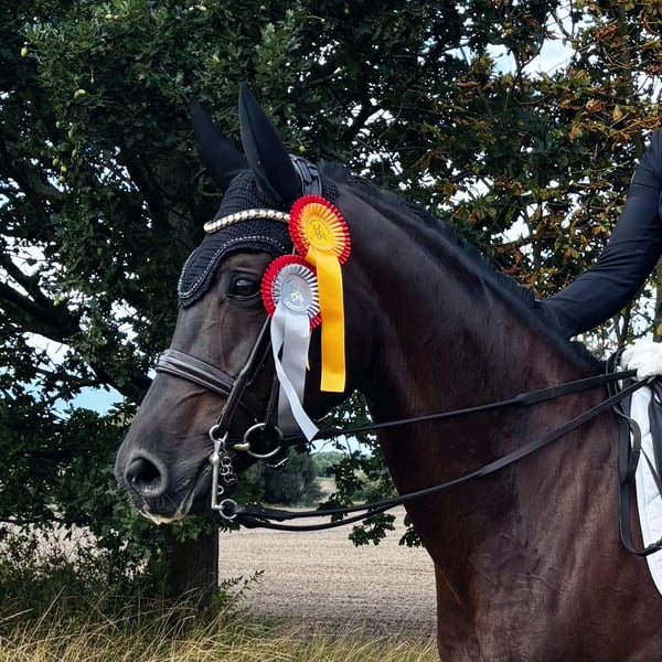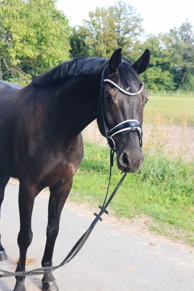 Zum Verkauf steht eine elegante, rittige und lektionssichere Stute mit bester Dressurabstammung. Die Stute ist aktuell M-fertig, hat letzte Woche ihre erste M-Dressur erfolgreich absolviert und war zuvor mehrfach siegreich in L-Dressuren auf Trense und Kandare. Zusätzlich ist sie hoch platziert in FEI Children Prüfungen und zeigt sich dabei stets nervenstark und leistungsbereit. Sie überzeugt durch drei sehr gute Grundgangarten, ihre enormen Rittigkeit und ihr liebenswerter Charakter machen sie zur idealen Partnerin für den ambitionierten Turnierreiter, der ein Pferd für das große Viereck sucht, als auch für schwächere oder ängstlichere Reiter. In jeder Situation zeigt sie sich gelassen und zuverlässig – ob auf dem Turnier, in der täglichen Arbeit oder im Gelände. Ein absolutes Traumpferd mit einem Herz aus Gold, das in jeder Hinsicht begeistert.