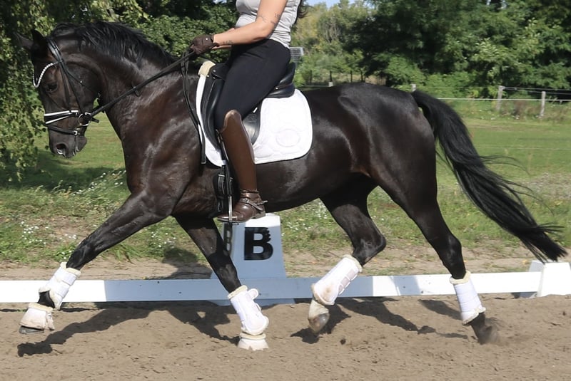 Na sprzedaż elegancka, chętna do pracy i pewna siebie klacz z najlepszym pochodzeniem w ujeżdżeniu. Klacz jest obecnie gotowa do startów w klasie M, w zeszłym tygodniu pomyślnie ukończyła swoje pierwsze zawody w M-dresurze, a wcześniej wielokrotnie zwyciężała w L-dresurach na wędzidle i na kantarze. Dodatkowo zajmuje wysokie miejsca w zawodach FEI Children i zawsze pokazuje się jako silna psychicznie i gotowa do pracy. Zachwyca trzema bardzo dobrymi podstawowymi chodami, jej ogromna chęć do pracy oraz uroczy charakter czynią ją idealną partnerką dla ambitnego jeźdźca startującego w zawodach, który szuka konia do dużego prostokąta, jak i dla słabszych lub bardziej nieśmiałych jeźdźców. W każdej sytuacji pokazuje się jako spokojna i niezawodna – czy to na zawodach, w codziennej pracy, czy w terenie. Absolutny koń marzeń z sercem ze złota, który zachwyca pod każdym względem.