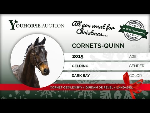 Cornets-Quinn ist ein erfahrener Springreiter, der bequem bis 1,40 m unterwegs ist und bereits Erfolge bei 1,45 m vorweisen kann. Er springt mit Übersicht und Technik, zeigt eine kooperative Einstellung und fühlt sich unter dem Sattel wohl und zuverlässig an. Er bleibt scharf an der Sprunglinie und arbeitet ehrlich, was ihn zur idealen Wahl für Reiter macht, die ein hochwertiges Sportpferd suchen, das sofort einsatzbereit für den Turniersport ist. Sein Pedigree ist außergewöhnlich. Züchterisch stammt er von Cornet Obolensky (Clinton x Heartbreaker) ab, der auf Grand Prix-Niveau bis 1,60 m erfolgreich ist und zu den weltweit führenden Zuchtsiegeln zählt. Er hat Top-Pferde wie Balou du Reventon, Clooney 51 und Coree auf 1,60 m/1,70 m hervorgebracht. Die Mutter Queena II (von Quidam de Revel, 1,60 m) hat mehrere erfolgreiche Sportpferde zur Welt gebracht, darunter Mackay (von Mylord Carthago), Sieger bei CSI2* auf 1,45 m, sowie Krown Royal HP (von Kannan GFE), zugelassen bei BAD-WU und bis 1,40 m erfolgreich. Die zweite Mutter Larissa (von Landadel) brachte Quetzen (1,45 m) und Queena II hervor. Weiter zurück in der Linie finden sich zahlreiche internationale Turnierpferde und zugelassene Hengste wie Hubba Bubba 2 (1,60 m, CSI5*-W), PAV Szenario (zugelassen bei HANN/ZfdP, 1,40 m), Cassus Blu (1,45 m), Vantastico (1,45 m) sowie viele Pferde, die zwischen 1,30 m und 1,45 m erfolgreich sind. Cornets-Quinn verbindet bewährte Turnierergebnisse mit einem edlen Pedigree – ein zuverlässiges, hochwertiges Sportpferd, das bereit ist, sein Können zu zeigen.