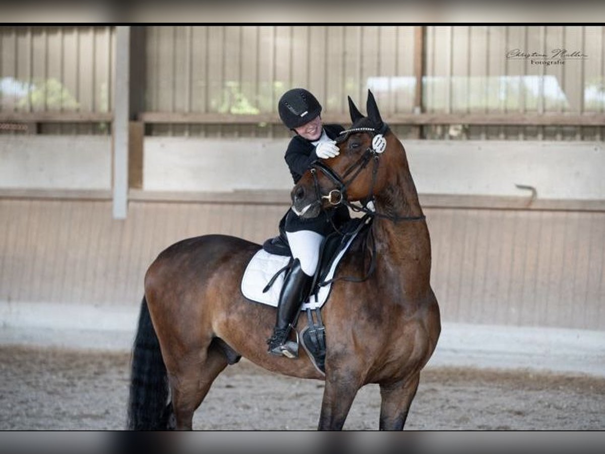 Sorgfältig vom Züchter aufgezogen, auf Grund seiner Größe und seiner raumgreifenden, überaus elastischen Grundgangarten langsam und nachhaltig angeritten und auftrainiert ist Berny nun bereit für Aufgaben im großen Viereck. Er wird zur Zeit von einer 17 jährigen sehr talentierten Reiterin in Kooperation mit ihrer S** erfolgreichen Trainerin gefördert. In allen Belangen des täglichen Umgangs super anständig.und problemlos händelbar, Erste Turnierstarts wurden absolviert. Rückfragen sehr gerne, weitere Videos können erstellt und zugesandt werden. Am besten ist jedoch ein persönliches Kennenlernen.
