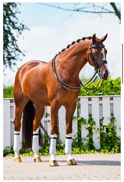 ✨ Geldo de clase junior de 2015, de color castaño, de la raza Oldenburg, en venta ✨ Actualmente compite con éxito en el nivel Junior/St. Georg y se encuentra en entrenamiento para Inter I/II. También muestra un gran talento para el paso y la piaffe. Cuenta con mucha experiencia en competición en las clases juveniles, habiendo obtenido orgullosamente puntuaciones de hasta el 69 %. Es probado, fiable y siempre da lo mejor de sí en el ring. Con sus tres pasos muy buenos, su movimiento natural y su presencia elegante, es un placer verlo y aún más disfrutarlo montando. Es cómodo de montar y fácil de manejar (muy suave en la rienda simple y acostumbrado a ser montado con doble rienda), lo que lo convierte en un compañero perfecto tanto para jinetes amateurs ambiciosos como para jinetes profesionales. Tiene buenas maneras, es fácil de cepillar y manejar (herrador/transporte), está acostumbrado a pasear y a ir al picadero y paddock todos los días. Sin vicios. Está listo para hacer brillar a su próximo jinete, ya sea que busques un compañero de competición confiado o un amigo de confianza para disfrutar cada día.