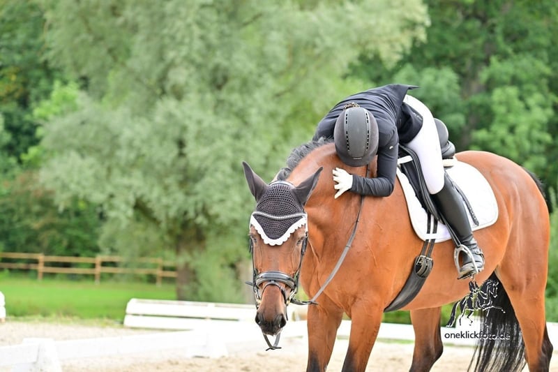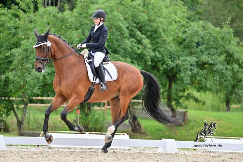 Encore élevé par le éleveur, choyé et soigneusement formé, « Dreamy » se montre toujours respectueux lors du travail à cheval, se déplace de manière fiable en solo ou en groupe en extérieur, et saute volontiers un petit parcours. « Dreamy » se comporte également bien en compétition, se laisse monter avec calme et se manipule facilement. Son niveau de dressage est actuellement au niveau M en formation ; il a déjà participé à des épreuves de dressage de niveau M. Avec sa prestance élégante, il constitue le partenaire idéal pour tout cavalier ou cavalière ambitieux(se), même dans le domaine du loisir haut de gamme. Il est bien manié, travailleur lors du travail à cheval et connaît la longe, le paddock et le pré. Il est actuellement en formation avec une cavalière de 17 ans, en collaboration avec sa coach de succès, dans le cadre d’un programme de perfectionnement. Si vous recherchez un cheval de dressage ou de saut talentueux et expérimenté, qui convainc aussi bien en carrière qu’au quotidien, et avec lequel vous prendrez beaucoup de plaisir, il pourrait être le cheval qu’il vous faut. Une assurance pour les frais d’opération peut être souscrite sans délai de carence. De plus, en tant qu’éleveur, nous offrons à ce cheval adulte, après sa carrière sportive, une place à vie. L’échange contre une jument ou un jeune cheval, même difficile, avec une origine intéressante en dressage ou saut d’obstacles, est envisageable. Pour plus d’informations ou pour organiser une visite, nous vous invitons à nous contacter. Veuillez privilégier les messages écrits ou vocaux uniquement au numéro de téléphone 0171… Nous vous accompagnons de manière complète et professionnelle lors de la séance d’essai.