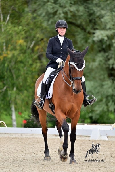 Noch vom Züchter, behütet aufgewachsen und sorgfältig ausgebildet ist „Dreamy“ stets anständig beim Reiten, geht zuverlässig alleine oder in der Gruppe ins Gelände und springt auch gerne einen kleinen Parcours. „Dreamy“ ist auch auf Turnier brav, lässt sich entspannt reiten und super händeln. Dressur Ausbildungsstand ist M im Training; ist M Dressur gegangen. Mit seinem eleganten Auftreten ist er der ideale Partner für jede/n ambitionierte/n Reiter/in, auch im gehobenen Freizeitbereich. Er ist brav im Handling, fleißig beim Reiten und kennt Führanlage, Paddock, Koppel. Zur Zeit wird er von einer 17 jährigen Reiterin in Kooperation mit ihrer S** erfolgreichen Tranerin weiter ausgebildet. Wenn Sie auf der Suche nach einem talentierten und erfahrenen Reitpferd sind, das sowohl im Viereck als auch im täglichen Umgang überzeugt und mit dem Sie viel Freude haben werden, dann könnte er genau der Richtige für Sie sein. Die OPKostenversicherung kann ohne Wartezeit übernommen werden. Darüberhinaus bieten wir als Züchter diesem volljährigen Pferd nach dem Ausscheiden aus den Sport einen Platz auf Lebenszeit. Die Inzahlungnahme einer Stute oder eines jungen auch schwierigen Pferdes mit interessanter Dressur- oder Springabstammung ist möglich. Für weitere Informationen und zur Vereinbarung eines Besichtigungstermins freuen wir uns auf Ihre Kontaktaufnahme; Text-/Sprachrichten bitte ausschließlich auf Tel.nr. 0171… Wir beraten und betreuen Sie umfassend und professionell beim Probereiten.