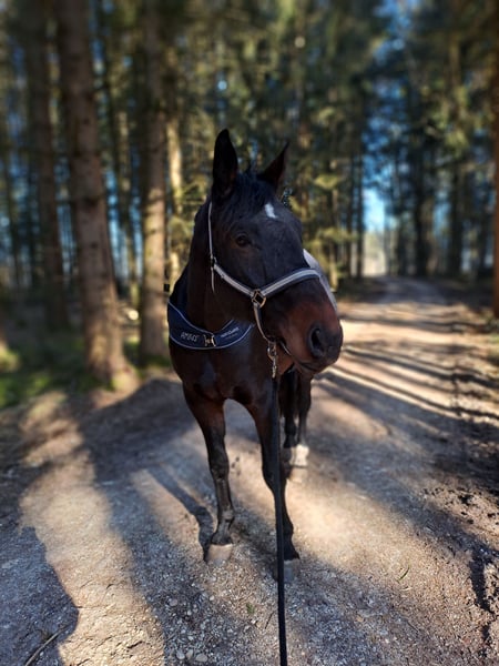 Bench ist ein wunderschöner, absolut liebenswerter Riese. Er genießt es sehr betüdelt und umsorgt zu werden. Gemütliche Spaziergänge oder Schrittausritte tun ihm sehr gut. Im Trab taktelt er seit mittlerweile ca 2 Jahren - mal tendenziell stärker, mal schwächer. Die Ursache hierfür ist trotz unterschiedlichster tierärztlicher Untersuchungen leider ungeklärt. In seinem täglichen Leben geht es ihm gut, als Reitpferd belastbar ist er leider nicht mehr. Wir wünschen uns für ihn einen Platz, wo er Pferd sein darf. Jemanden, der gerne Zeit mit einem absolut liebenswerten Riesen bei langen Spaziergängen und/ oder gemütlichen Schrittausritten verbringt. Platz vor Preis.