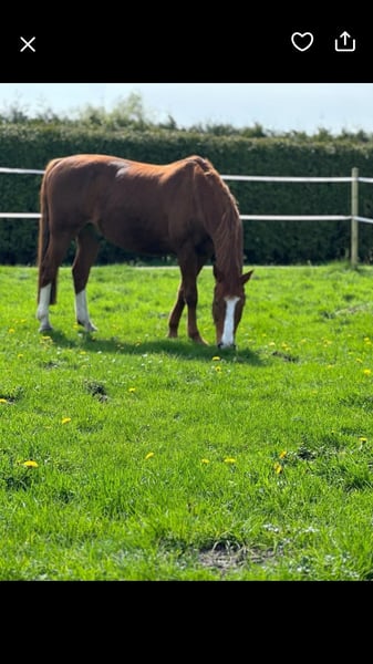 Very well-behaved companion horse with a hoof joint issue, available to a trusted home for a fee.
