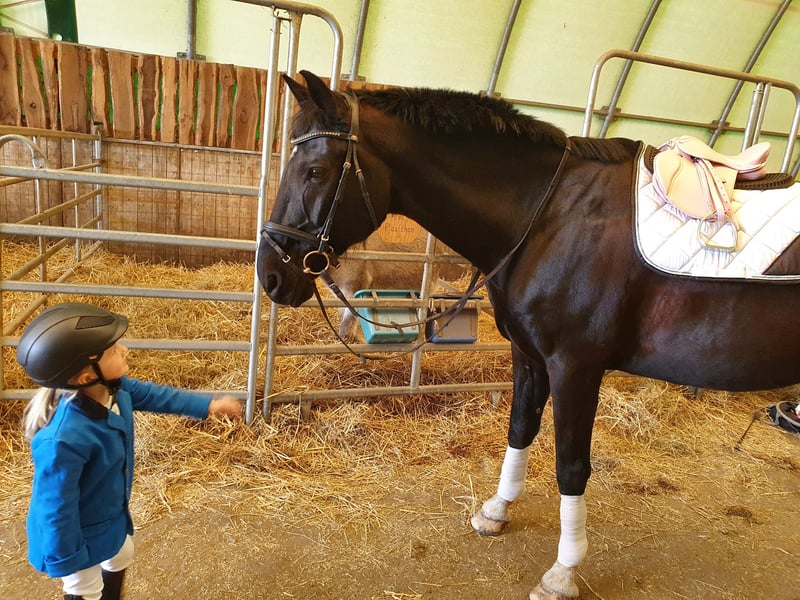 Hallo, ich suche für meinen 23-jährigen Oldenburger Wallach eine Pflege- ggf. Reitbeteiligung. Charly ist ca. 1.72 groß und ein super braver, entspannter, liebenswerter aber immer noch aufgeweckter Wallach der beschäftigt werden möchte. Aufgrund seines Alters und mittlerweile leichter Arthrose ist er zwar reitbar, aber natürlich nur noch altersentsprechend. Bei dir sollte das Reiten also nicht im Vordergrund stehen. Er liebt es ins Gelände zu gehen, Bodenarbeit zu machen oder kleine Zirkuslektionen zu lernen. Er freut sich über jede Art von Aufmerksamkeit und Beschäftigung wie z.B. kuscheln, putzen, spazieren gehen etc. Wer also Freude daran hat, seine Freizeit mit einem netten, liebenswerten Wallach zu verbringen, der ist bei ihm genau richtig. Wir stehen in einem Stall in der Nähe von Wurzen (04808) der sehr gut über die Öffis zu erreichen ist. Bei Interesse einfach gern melden.