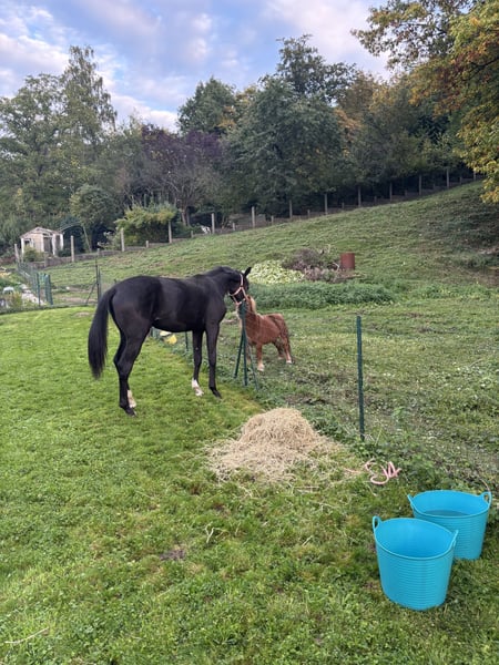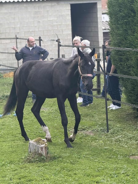 À vendre : Hongre Oldenbourg, né en 2024 Ce magnifique hongre de race Oldenbourg, d’un bai brun foncé élégant, incarne la finesse et la prestance propres à cette prestigieuse lignée. Avec une taille de 155 cm, il présente un modèle harmonieux, idéal pour un cavalier cherchant un cheval polyvalent et bien équilibré. Ce jeune cheval, encore en pleine croissance, a déjà montré de belles dispositions pour le dressage. Son tempérament calme et sa bonne éducation en font un compagnon fiable et agréable à monter, même pour un cavalier en développement ou un amateur exigeant. Sa morphologie lui permet de développer un bon cadre de travail, tout en conservant une souplesse et une aisance naturelle dans ses mouvements. Ce Oldenbourg possède un bon potentiel pour évoluer dans le cadre d’un programme de dressage, grâce à ses qualités de mouvement et sa volonté de bien faire. Son look noble et sa présence en font un cheval qui ne passera pas inaperçu en compétition ou en concours. N'hésitez pas à me contacter pour plus d’informations ou pour organiser une visite. Ce jeune cheval prometteur saura séduire un cavalier passionné à la recherche d’un partenaire de qualité pour le futur.