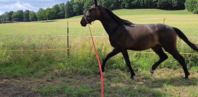 3 Jähriger roher Wallach ohne Abzeichen, liebevoll aufgezogen und menschenbezogen. Macht das erste Longieren top Endstockmaß ca. 165 bis 168
