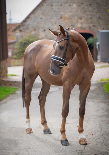 ⚜️à vendre ⚜️ * Hongre * 2022 * env. 1,60 m * Total Diamond/ Contendro Petit mais fin, cheval de qualité, très bon jeune cheval de Vivaldon. Équipé de trois très bonnes allures de base, il impressionne sous la selle par son excellente montabilité. Il est calme et facile à manipuler, tant à pied qu'à cheval. Il est actuellement très bien monté et travaillé selon son âge. Ceux qui souhaitent faire la connaissance de ce charmant jeune homme peuvent se renseigner au numéro suivant… 0173/9954104 📞