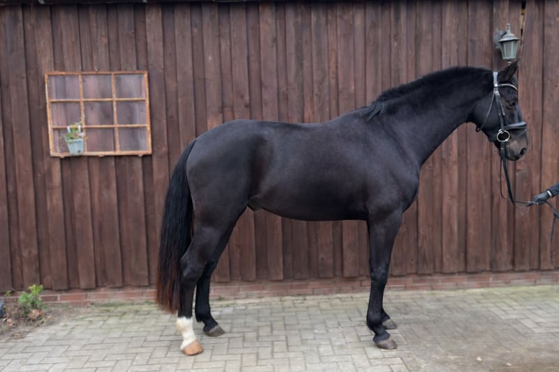 For sale is this talented dark bay gelding by Dimaggio out of a Diamond Hit mare. The gelding comes directly from the breeder and has recently been backed. With three good basic gaits, a positive work attitude, and a loving temperament, he offers ideal prerequisites for a great riding partner. The horse, whom we affectionately named Dr. Claus, currently measures 16.1 hh and was born in 2022. We are looking for a caring and supportive home. A recent inspection report is available. Please feel free to contact us if you are interested or have any questions.