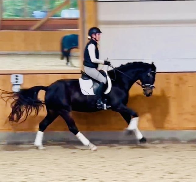 Zum Verkauf steht ein 4-jähriger Oldenburger Wallach, der nicht nur mit seiner schönen Aufmachung, sondern auch mit seinem großartigen Wesen überzeugt. Voraussichtliches Endmaß ca. 1,67 m – also ein sportlicher Allrounder im handlichen Format. Er begeistert mit qualitätsvollen Grundgangarten, ist leichtrittig, gelehrig und seinem Alter entsprechend ausgebildet. Dabei zeigt er sich stets motiviert und aufmerksam – ein echter Partner mit Köpfchen und Herz. Von Fohlen an in Familienhand aufgewachsen, kennt er den behutsamen Umgang und hat einen unerschütterlichen, kinderlieben Charakter. Er ist verlade- und schmiedefromm, kennt das Gelände und zeigt sich im Springtraining mutig und unerschrocken. Keine Unarten – aber natürlich ein junges Pferd, das sich weiter entwickeln möchte. Damit ist er ideal für den ambitionierten Reiter, der Freude daran hat, ein vielversprechendes Talent weiter zu fördern. Abgegeben wird er schweren Herzens und nur aus Zeitmangel in beste Hände.