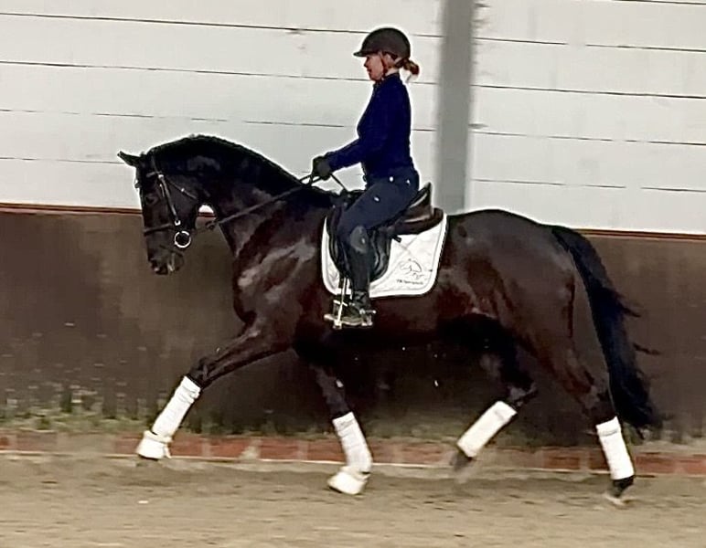 Liebe Kaufinteressenten, Für Fragen oder Terminvereinbarungen senden Sie uns bitte eine WhatsApp oder E-Mail. Telefonisch erreichen Sie uns WERKTAGS und am besten gegen Mittag. Sollte dem nicht so sein, bitte einfach eine Nachricht schreiben und wir melden uns zurück. Wir freuen uns auf Ihre Kontaktaufnahme! „Impi“ ist ein wunderschöner und sehr qualitativer Youngster, der unter dem Sattel sofort alle Blicke auf sich zu ziehen weiß. Er verfügt über drei tolle Grundgangarten und ein unheimlich harmonisches Seitenbild. Bereits nach kurzer Zeit unter dem Sattel zeigt er sich sehr ausbalanciert mit einem sehr schön geschlossenen Hinterbein und toller Perspektive für später. Eine junge Dressurofferte mit Qualität und dem richtigen „Go“ für die späteren Lektionen, um gemeinsam eine vielversprechende Zukunft im Dressurviereck aufzubauen. Er ist ebenfalls sehr toll im Umgang mit anderen Pferden und liebt auch die täglichen Kuscheleinheiten mit seinem Reiter sehr. Guter TÜV vorhanden.