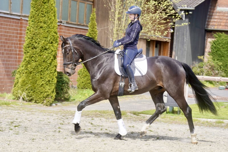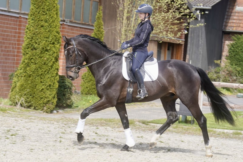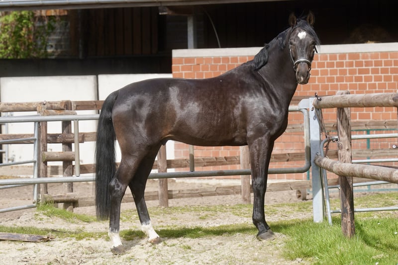 Verkaufe einen vielversprechenden Oldenburger Wallach, geboren im Jahr 2022. Der Rappe überzeugt durch seine ansprechende Erscheinung und sein ausgeglichenes Wesen. Mit einem Stockmaß von 171 cm bietet er die ideale Größe für den ambitionierten Dressurreiter. Der junge Wallach ist angeritten und zeigt bereits erste vielversprechende Ansätze in der Dressur. Sein Bewegungsablauf ist taktklar, elastisch und ausdrucksstark, was ihn zu einem vielversprechenden Nachwuchspferd für den Dressursport macht. Der Rappe ist gesund, regelmäßig geimpft und verfügt über eine vollständige, aktuelle Huf- und Zahnstatus. Ein Pferd mit viel Potenzial, das noch weiter gefördert werden kann und auf der Suche nach einem verantwortungsvollen Reiter ist, der seine Entwicklung unterstützt. Bei Interesse freuen wir uns auf Ihre Kontaktaufnahme.