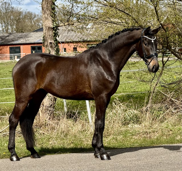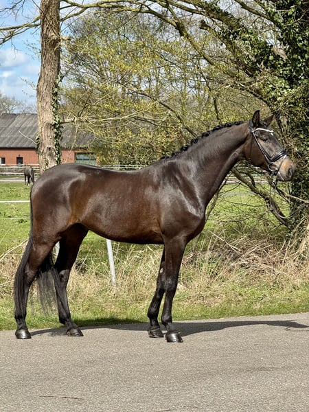 Te koop staat hier een betoverende ruin van Dynamic Dream x De Niro, rechtstreeks van de fokker. Darino, zoals ik (de amazone) hem heb genoemd, is een paard met gegarandeerde goede humeur. Hij is de perfecte middenweg tussen sportieve inzet en totale ontspanning. Hoewel hij pas recent onder het zadel is, brengt niets hem snel uit zijn evenwicht. Hij wordt dagelijks gereden door zijn fokkers van meer dan 80 jaar oud en telkens weer naar mij gebracht voor het rijden. Dit doet hij vol vertrouwen en is absoluut braaf en kalm in omgang. Hij is bij u ook opgegroeid en altijd in goede handen geweest. Vorig jaar is hij heel kort aan het ruitergewicht gewend en heeft daarna nogmaals de tijd gekregen om fysiek te groeien. Deze ontwikkeling is nog steeds niet voltooid. Darino beschikt over een zeer stabiel en correct fundament met uitstekende hoeven. Ik zou hem beschrijven als een paard van de 'oude stempel', wat naar mijn mening een groot voordeel is voor de duurzaamheid. Hij moet alleen nog wat groeien in zijn grootgebouwde lichaam. In februari van dit jaar heb ik hem voorzichtig begonnen te rijden. Hij toonde zich daarbij steeds uiterst braaf en coöperatief en heeft nog nooit een verkeerde stap gezet. Ondanks zijn jonge leeftijd geeft hij de ruiter een heel veilig gevoel, waardoor ik me kan voorstellen dat ook onzekere ruiters zich snel op hem op hun gemak voelen. Hij beschikt over drie gelijkwaardige, echt mooie gangen, waar zeker nog veel uit te halen valt. Ik heb hem ook al op verschillende plaatsen en in verschillende hallen gereden; dat stoort hem allemaal niet. Darino is van kop tot staart zonder gebreken gekeurd en heeft geen bekende ziekten. Wie op zoek is naar een paard met echt zeer goede basiskwaliteit, een uitstekend fundament, uitmuntende rijbaarheid en een geweldig karakter, en misschien nog wat fantasie heeft wat de fysieke ontwikkeling betreft, heeft hier de unieke kans op precies dat. Als ik het geld en de ruimte had, zou ik hem zelf kopen. Ik ben echt volledig overtuigd van dit paard. Het brengt me elke dag ongelooflijk veel plezier. Neem gerust telefonisch contact met mij op via 0151-46756498.