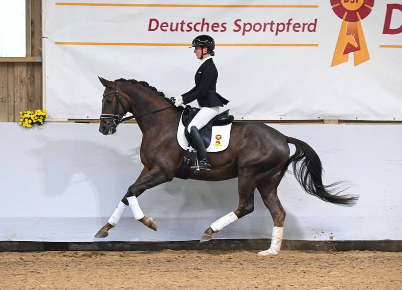 Hier geht's zur Kollektion und Online-Registrierung: https://auktion.pzvbw.de/auctions MwSt. 19 % Ebenbild seines großartigen Vaters! Mit besten Reiteigenschaften, drei korrekten Grundgangarten und einem höchst angenehmem Temperament. Die Mutter ist Halbschwester zum Grand Prix Sieger Joy Game / Frederic Wandres. A spitting image of his magnificent sire! With excellent riding qualities, three correct basic gaits, and a most pleasant temperament. The dam is a half-sister to Grand Prix winner Joy Game / Frederic Wandres.