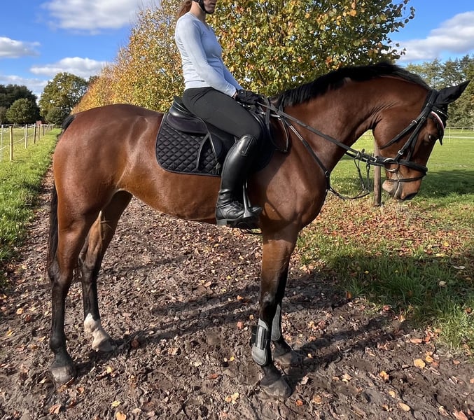 Zum Verkauf steht eine sehr typvolle und qualitätsvolle 5-jährige Springstute mit viel Vermögen und gutem Charakter. Ihr Vater Diaron überzeugt durch Rittigkeit und Athletik, mütterlicherseits bringt sie über Chaccoon Blue beste Vorsicht und Technik mit. Die Mutter läuft im großen Sport. Debby ist geritten und befindet sich in einer guten Grundausbildung. Sie zeigt am Sprung eine sehr gute Manier, Vermögen und Vorsicht. Sie ist will kein Fehler machen. Aufgrund meiner Babypause konnte ich sie in letzter Zeit nicht weiter fördern, daher wurde sie dieses Jahr nur ein Mal auf Turnier vorgestellt. Debby besitzt gute GGA und viel Go. Für Reiter*innen, die ihr Pferd selbst ausbilden möchten, bietet sie eine gute Grundlage, ist allerdings nicht für reine Anfänger geeignet (hat viel Go). Im täglichen Umgang ist sie menschenbezogen, freundlich und unkompliziert. Sie arbeitet gerne mit, ist klar im Kopf und angenehm zu reiten. Auch in der Vielseitigkeit kann ich sie mir gut vorstellen. Mit etwas mehr Training über den Winter wird sie bestimmt ein sehr talentiertes Springpferd für die nächste Turniersaison. Debby ist Schmiede- und Verladefromm, hat keine gesundheitlichen Einschränkungen, keine Unarten, wie Steigen oder ähnliches und einen sehr guten TÜV mit 18 Bilder ( auch Rücken) von 2023.