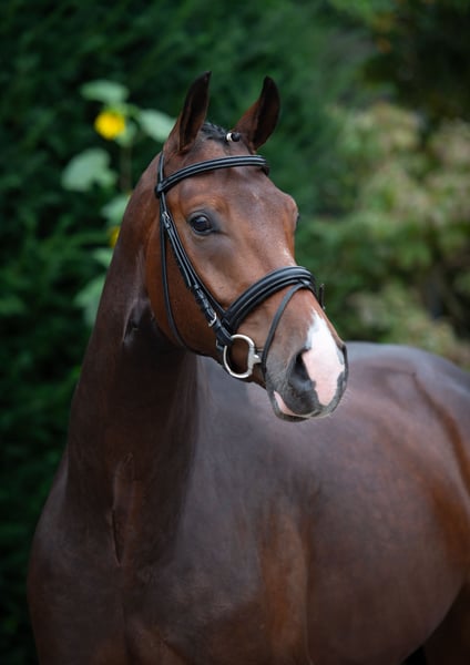 Alph is a harmonious gelding with plenty of go. His flowing movements through the body are characterized by rhythm, impulsion, and elasticity. Having been under saddle since mid-March 2025 and still in development, the gelding demonstrates a high level of willingness and rideability, which is already reflected in his sensitivity to rider aids. Due to his eagerness to learn, Alph is on his way to competing in A-level dressage. Progeny from this dam line are successful in both dressage and show jumping, not only in the youth and amateur classes but also up to the advanced level. X-ray examinations from 2024 show no findings.