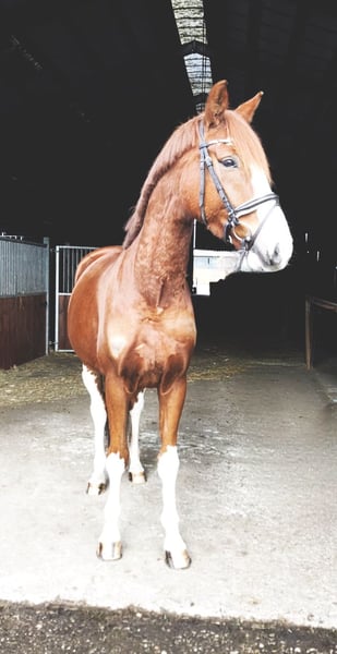 Eyecatcher gesucht? Zum Verkauf steht hier ein attraktiver Fuchswallach mit einem Stockmaß von 1,70 m in besonderer Optik. Abstammung: De Niro Gold x Castellini Dieser schicke Wallach überzeugt nicht nur durch seine ansprechende Optik, sondern vor allem durch seinen lieben und verschmusten Charakter. Im täglichen Umgang zeigt er sich sehr menschenbezogen, brav und unkompliziert – ein echtes Herzenspferd. Unter dem Sattel ist er motiviert und leistungsbereit. Aktuell zeigt er sich noch etwas umweltorientiert, bringt jedoch bereits Turniererfahrung mit und sammelt weiter Sicherheit. Mit entsprechender Förderung ist er ein vielversprechender Partner für ambitionierte Freizeitreiter oder den Turniersport. Er ist gesund und verfügt über einen guten TÜV. Bei ernsthaftem Interesse freuen wir uns über eine Nachricht. Weitere Informationen gerne auf Anfrage.