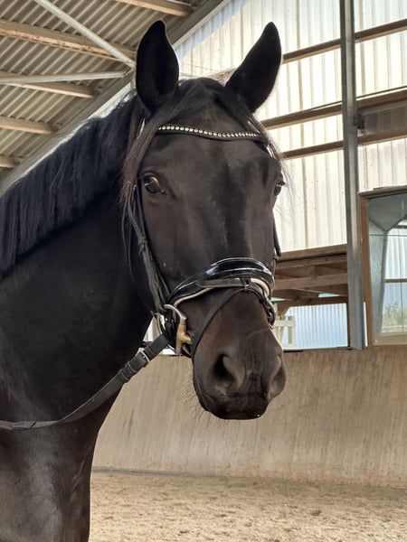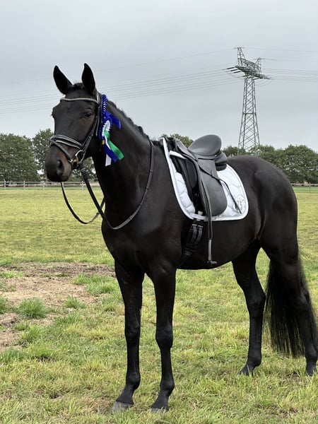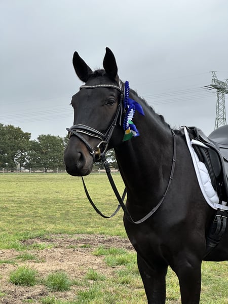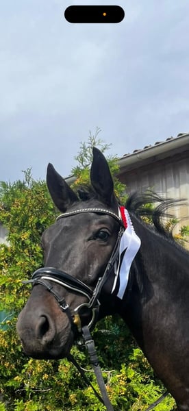 Anyone who wants to enjoy riding every day shouldn't miss out on our handsome guy. He has been gently trained by a young rider. Together, they have already competed in two competitions and placed twice. After a successful chip operation at the age of four, he had a break until the spring of this year and has already developed significantly in this short time. Very people-oriented and friendly, I am looking for a nice home for him. He has been with me since he was a foal. Quality for higher tasks is definitely present, but he is also the right partner for a leisure rider.