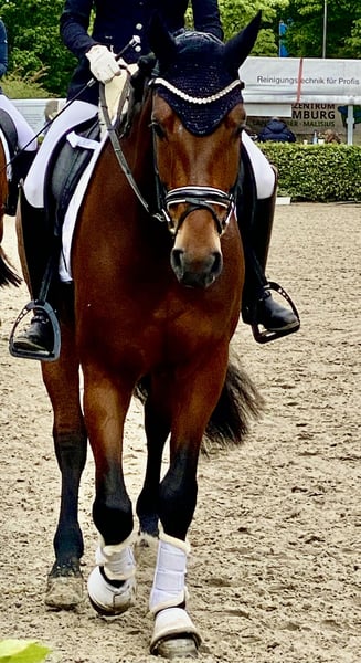 **Verkaufsanzeige: Eleganter Oldenburger Wallach** Wir bieten einen herausragenden Oldenburger Wallach zum Verkauf an. Hier sind die Details: - **Rasse:** Oldenburger - **Geschlecht:** Wallach - **Geburtsjahr:** 2021 - **Farbe:** Brauner - **Stockmaß:** 172 cm - **Disziplin:** Dressur Dieser junge Wallach besticht durch seine elegante Erscheinung und hervorragende Bewegungsqualität. Er zeigt großes Potenzial für die Dressur und ist bereit, mit dem richtigen Reiter weiter gefördert zu werden. Sein freundliches Wesen und seine Lernbereitschaft machen ihn zu einem idealen Partner für ambitionierte Reiter. Der Wallach wurde liebevoll aufgezogen und schonendst angeritten und ist direkt aus Züchterhand. Bei ersten kleinen Geländeritten zeigt er ein souveränes und ausgeglichenes Wesen. Herausstechend ist der enorme Schritt und die überaus aktive Hinterhandtätigkeit mit dem schön bergauf gesprungenen Galopp. Der Vater Total Hope war dieses Jahr Olympiateilnehmer, die Mutter Mutter Utika H brillierte selbst auf der Vechtaer Auktion. Sie ist Schwester von mehreren Grand Prix- Pferden, darunter: Sandro Boy/Lyndal Oatley, AUS, und Utopia H/Juan Manuel Vidal-Testal, ESP. Aus dem renommierten Uthoba-Stamm. Sie entstammt damit einem der besten Stutenstämmen der Oldenburger Zucht und ist Schwester eines zweifachen Olympiateilnehmers. Ein älterer Bruder war Eliteauktionspferd, ein weiterer Bruder ist schon weit gefördert in einem Top -Dressur - Ausbildungsstall. Gehobenes Preissegment. Bei Interesse und für weitere Informationen, zögern Sie nicht, uns zu kontaktieren.