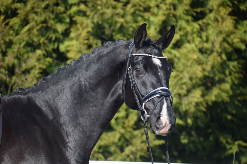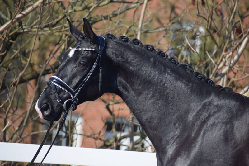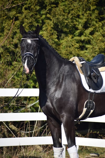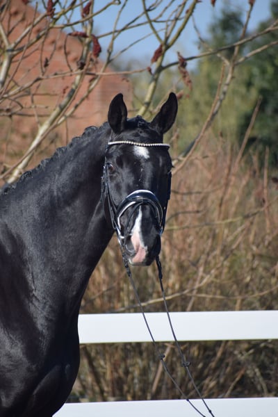 Successful in competitions (multiple placings / winner with a score of 8.7), a stunning, easy-ride dressage gelding with plenty of presence, expressive movement, and the heart in the right place – by Totilas bloodline – suitable for juniors! Representing the owner/breeder, this highly successful, 177 cm tall, 5-year-old Oldenburg gelding is a talented Rapp with excellent modern dressage pedigree from TOTAL MCLARAN (Totilas) x DONNERSCHWEE x ALABASTER. Visually, the powerful, clearly stallion-type, large-framed "TITUS" stands out with his sleek black coat (rear white markings + star + snip), his expressive face, striking neck, and harmonious conformation. In movement, he demonstrates a rideable, elastic dressage horse with three equally good, striking basic gaits, a swinging back, uphill tendency, appealing side profile, and a well-angled, powerful hind leg with high willingness to engage and carry weight. At competitions, "TITUS" has already achieved numerous placings in Reitpferde- and Dressurpferde A tests, including a Dressurpferde A victory with a score of 8.7. Since the beginning of his training, "TITUS" has been in professional work and is on Dressurpferde L level. Character-wise, Titus is confident, even in unfamiliar environments. He is straightforward in handling and under saddle. He is generally easy to work with and open to new experiences. Despite his age, he shows remarkable composure and bravery, combined with a calm demeanor. If you are looking for a horse with great potential and a true friend with a good heart, this is your chance. Due to his high cooperation, rideability, and honest character, he is also suitable for juniors and young riders. An excellent opportunity to acquire a fantastic horse. After purchase, "TITUS" can remain in our professional training and be presented at shows. A comprehensive, standard radiographic exam (back + neck) and TÜV are available.