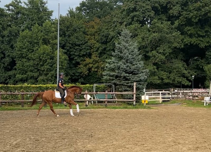 Quality and Potential – Fidelio Solero is looking for his person! For sale is our beautiful, relaxed, and absolutely well-behaved gelding Fidelio Solero, a 6-year-old son of the top sire Franziskus x De Niro. With an elegant, stallion-like exterior, he stands at approximately 163 cm and has excellent body coverage – in the pictures, the rider is 183 cm tall. He is currently being ridden by both a man and a woman. Solero impresses with three expressive, rhythmical basic gaits and solid training. He is loading-friendly, knows the farrier, and behaves impeccably there as well as in daily handling. Whether it’s children, dogs, or other horses – Solero is friendly and sociable. He is very eager to learn, attentive, and positively sensitive – a horse that seeks a nurturing hand to recognize and further develop his enormous potential. Trail rides or outdoor arenas are no problem for him. Solero responds finely to aids, is pleasant to ride, and listens excellently to voice commands – both under saddle and on the lunge. No vices: He does not rear, buck, or show any negative behaviors. In new situations, he may look around or stand still. When he trusts his person, he also becomes a cuddly horse. Solero was last barefoot and now wears front shoes. The last veterinary check was without findings. As he is still young despite his great character, he is not a beginner's horse but is looking for a rider with feel and ambition – preferably with aspirations for advanced dressage sport. Location: Aachen Trial ride: €30 (will of course be deducted from the purchase price) If you are looking for a reliable partner with a lot of heart, calmness, and perspective – get to know Solero! We are happy to send videos upon request!