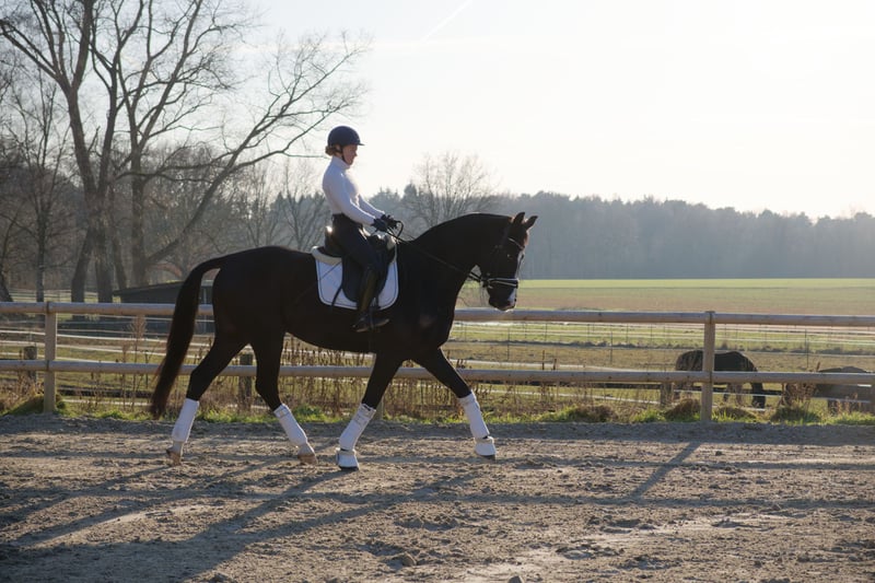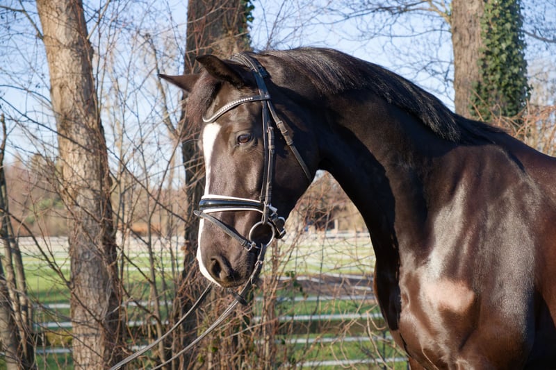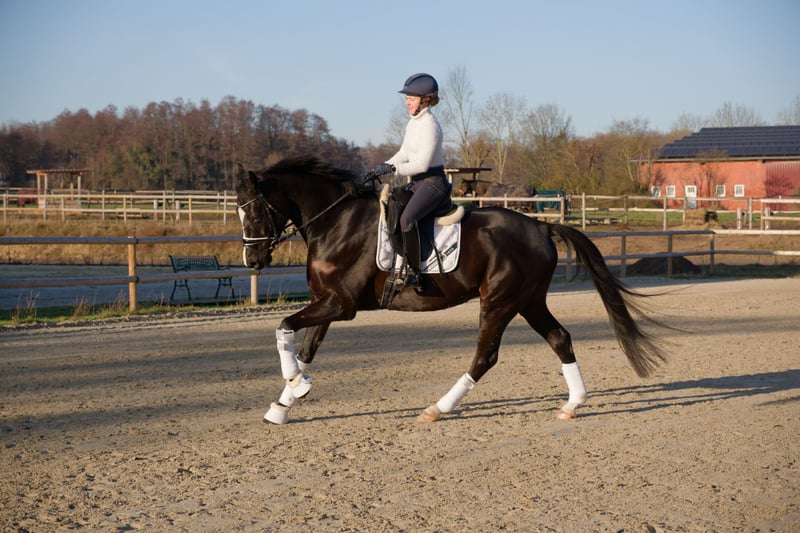 For sale is the Oldenburg gelding Dark Diamond, a tall, modern black stallion born on May 15, 2020, with an current height of 16.1 hh. He is sired by Desperado out of Lauries Crusador xx – a highly interesting combination of performance ability, rideability, and modern dressage aptitude. "Diamond" was gently backed at the age of four and now presents himself as attentive and motivated during work. He impresses with his harmonious conformation and three appealing basic gaits. Under saddle, he is currently competing at A-level dressage. He already trains simple flying changes and extended trot as part of his daily routine. He shows a strong willingness to learn and responds pleasantly to voice aids. In daily handling, "Diamond" is well-behaved, uncomplicated, and very agreeable. He is shoe- and loading-safe, fully vaccinated, and regularly wormed. He currently spends his days outside in a mixed herd and stays in his stable at night. In the herd, he is lower in rank, social, and very tolerant. He especially enjoys playing with his gelding friends. He is also absolutely straightforward, calm, and very gentle when interacting with mares. A comprehensive health check including X-rays of the neck, back, and all limb images was performed in December 2024 – all results were unremarkable! Due to his age, "Diamond" is not suitable for beginners or insecure riders but is ideal for riders with some experience who enjoy dressage training and young horse development. Feel free to contact us without obligation to arrange a viewing appointment! 01578 4321840