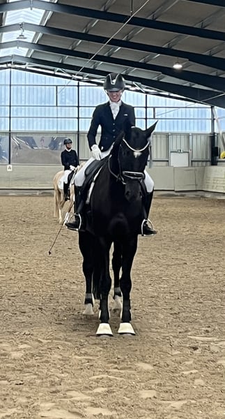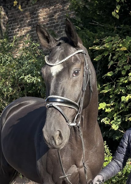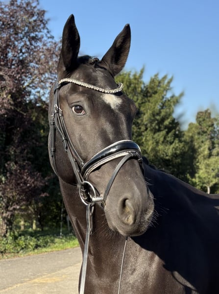 6-year-old gelding by Don Martillo x L'espoir, approximately 1.72m, for sale at a significantly reduced price due to poor vet check! He competed at 4 years old with an amateur in two riding horse classes and was able to place both times. Currently, he is in professional training and achieved 2nd place in his first start in Drpf A. Don Camino is pleasant to ride and well-behaved. He has three excellent basic gaits and a good work ethic. He is also easy to handle in the field and during handling.