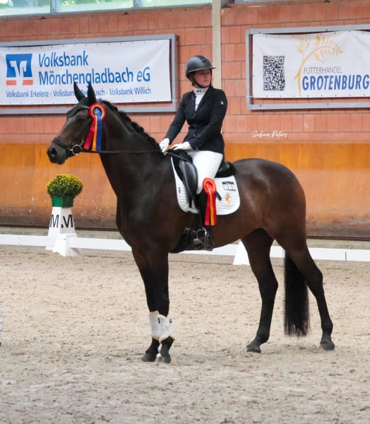 Fendi è un castrone Oldenburg nato nel 2019, con una genealogia eccellente di fondazione, derivata da una madre Quaterback. Le sue tre andature di grande qualità, insieme alla sua presenza distintiva, lo rendono un'offerta di primo livello per un ulteriore percorso di formazione. In tutte le sue gare in Dressurpferde A si è sempre piazzato. Attualmente è addestrato a livello L. Video su richiesta. Sede: 5845 EJ Sint Anthonis. Per ulteriori informazioni, contattare telefonicamente o via WhatsApp al 0049172-1743163.