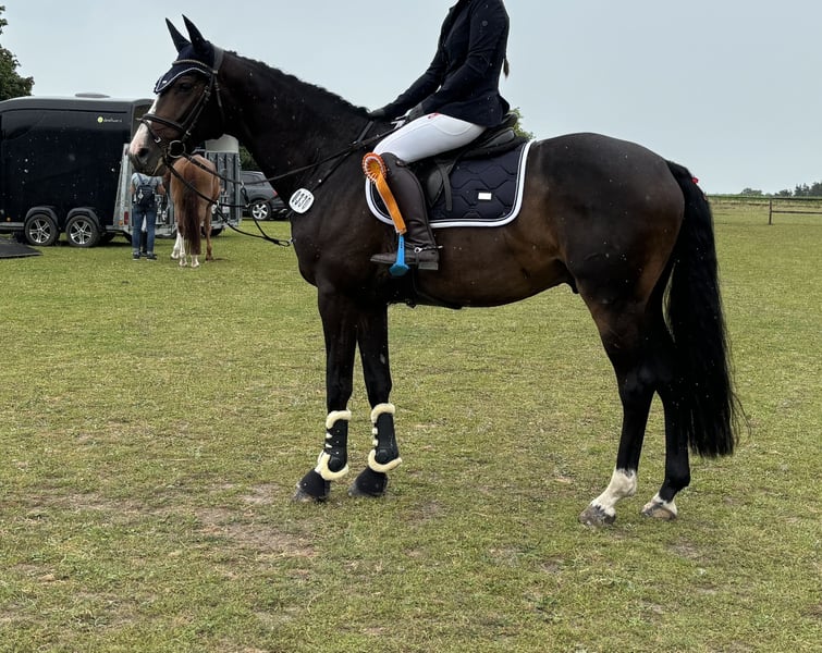 With a heavy heart, I am offering my 8-year-old Oldenburg show jumping gelding for sale. Standing approximately 1.70 meters tall, he impresses not only with his size but especially with his quality and talent over fences. He has an excellent pedigree for show jumping. The gelding has already been introduced up to A* level and consistently demonstrates motivation, willingness to perform, and nerve. He features three very good basic gaits, is trained in a supple manner, and has been trained at a solid A-level. He is also very well developed gymnastically and jumps with a lot of overview, caution, and technical skill. He is regularly (four times) shod and shows himself to be well-behaved and uncomplicated in daily handling. Important: He is not suitable for beginners. The gelding requires a confident, experienced rider who can correctly promote and further develop him. I am looking for a loving and encouraging home where he can continue to be supported and developed. This is not a distressed sale – he will only be entrusted to the best hands. If genuinely interested, I look forward to hearing from you.
